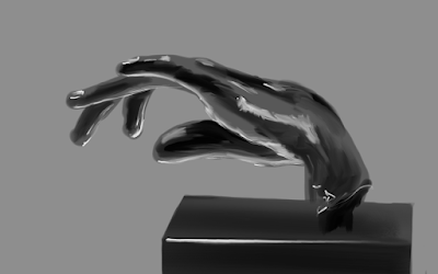Then I flipped it around and, starting with just the outline, tried to add gray and black and white to bring out the three-dimensional form.